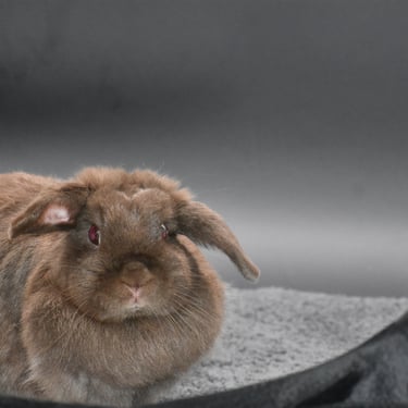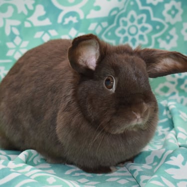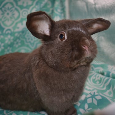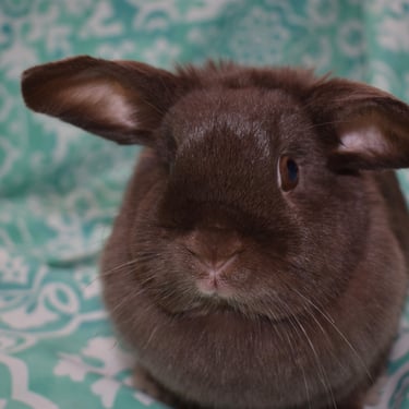 Henrietta is a sleek solid chocolate spayed doe with one of the most advanced internal radar systems ever observed on the Homestead. Her impressive airplane ears operate with astonishing precision, swiveling independently to track movement, monitor Bun behavior, and detect suspicious rustling long before anyone else notices a thing.