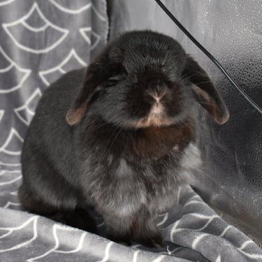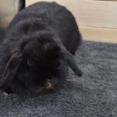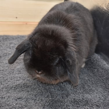 Zinnia is a beautiful solid black doe with joy in her heart and zoomies permanently loaded in her paws. Bursting with cheerful energy and enthusiasm, she brings excitement, laughter, and a sense of celebration to every corner of the Homestead. If Zinnia is around, spirits are going up.